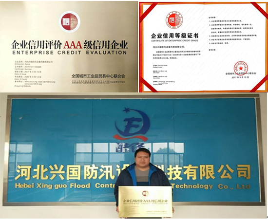 全國(guó)城市工業(yè)品貿(mào)易中心聯(lián)合會(huì)對(duì)河北興國(guó)防汛設(shè)備科技有限公司在2017年9月15日—2020年9月14日的信用狀況進(jìn)行了評(píng)價(jià),評(píng)定結(jié)果為AAA級(jí)。