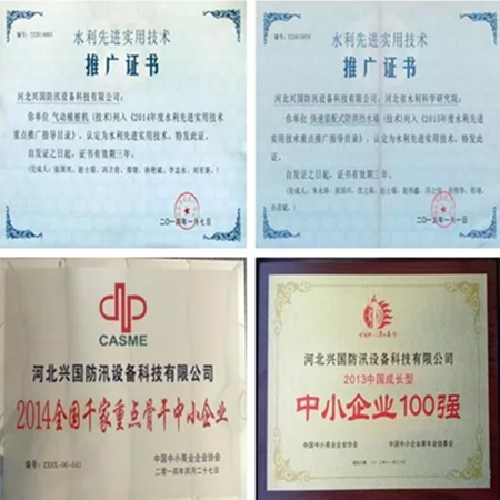 2012年通過(guò)了ISO9000質(zhì)量管理體系認(rèn)證,2012年公司被評(píng)為河北省市場(chǎng)公眾滿意推廣單位,2013年榮獲"中國(guó)成長(zhǎng)型中小企業(yè)100強(qiáng)"企業(yè),2014年榮獲“中國(guó)科技成長(zhǎng)型中小企業(yè)100強(qiáng)”企業(yè)。
